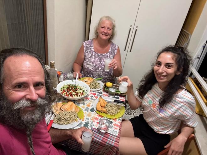 Funda insisted on cooking us dinner that evening, and prepared a lovely dish of baked salmon, seasoned rice, and salad, which we had with rakı, the Turkish version of the ubiquitous Mediterranean licorice drink.