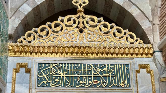 Many parts of the Palace were decorated with beautiful Arabic calligraphy. This is over the main door to the harem and translates as “O believers, do not enter the houses of the Prophet without permission.” Some of the other, equally beautiful, calligraphy recorded prosaic things like the value and source of endowments provided to the Palace eunuchs and other officials – sort of like naming an university faculty after a generous donor.