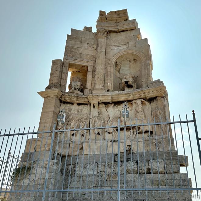 Near the top of the the Hill of the Muses is the twelve metre high Philopappos Monument, constructed in the 2nd century AD and partially restored in 1904.