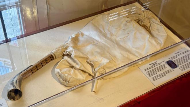 The basement of the museum included a display of replica armour from ancient Greece.