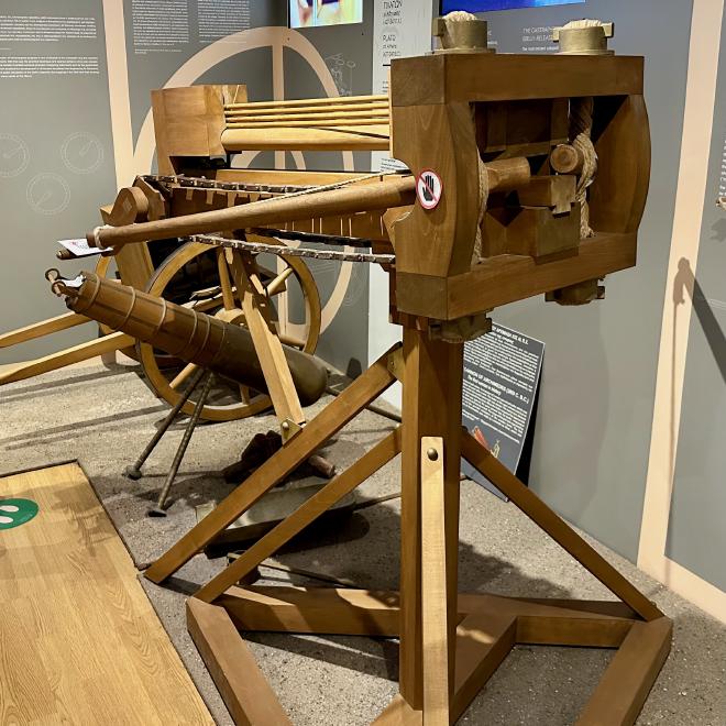 Kotsanas Museum of Ancient Greek Technology and the Museum of Ancient Greek Musical Instruments and Toys were passion projects of Kostas Kotsanas, who established them “to reveal an unknown aspect of ancient Greek civilization and to prove that the technology of the ancient Greeks, just before the end of the ancient Greek world, was extremely similar to the beginning of our modern technology.” The Museums are aimed at both adults and kids, which suited us just fine. Exhibitions from the museums have toured worldwide and Kotsanas has presented scholarly papers on ancient Greek technologies at a number of international conferences. Each item in the museums included citations of the original Greek writing in which the item was described.