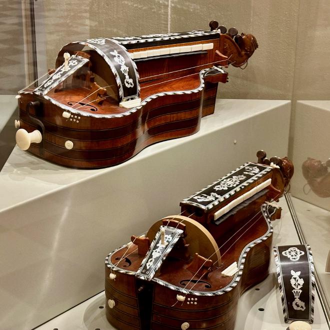 These beautiful hurdy-gurdies are from the workshop of Jean Nicolas Lambert, made in 1775. Karen’s friend Alison, who plays hurdy-gurdy in Kingston’s Swamp Ward Orchestra, will no doubt be shocked to learn that the hurdy-gurdy is “an instrument no longer used today”, at least according to the curators of the Galleria.