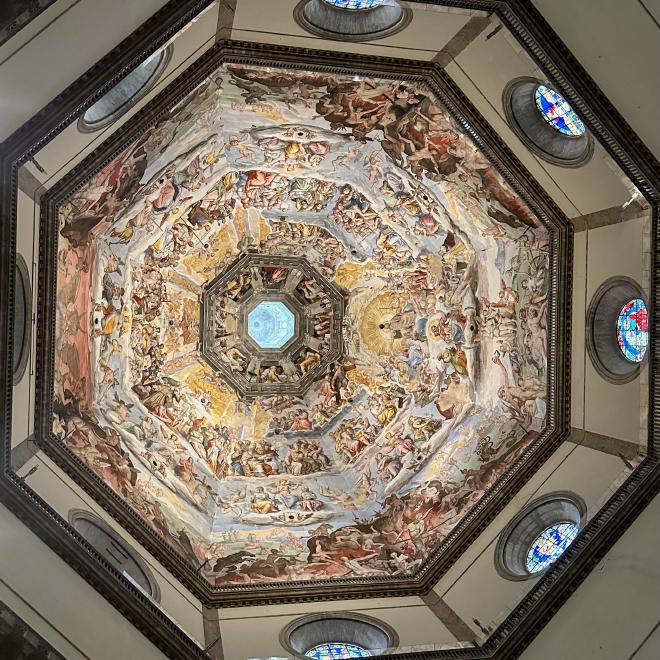 However, the dome is covered by a spectacular fresco of the Last Judgement.