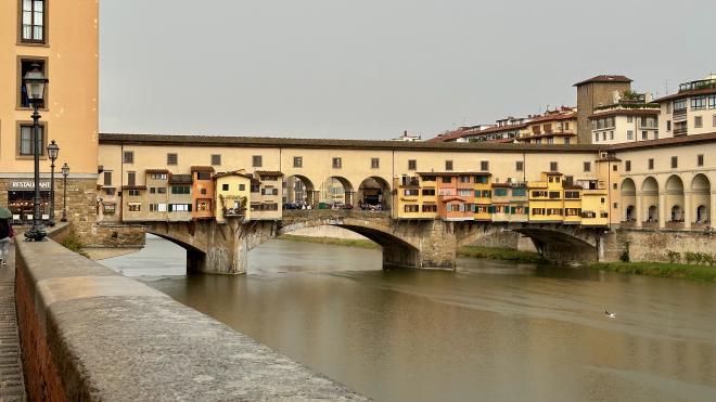 Here’s a closer view of the Ponte Vecchio. As you can see, it is built up the entire way across, much like London Bridge back in the seventeenth century.