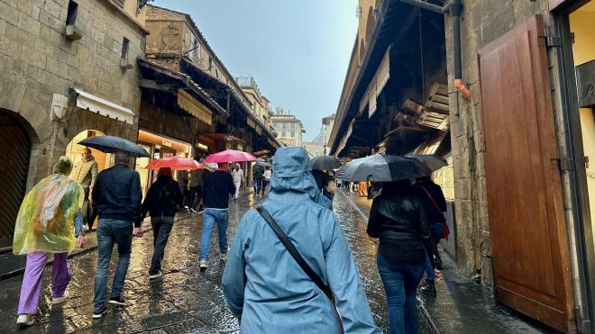 And here we’re walking across the Ponte Vecchio. Can you tell we’re on a bridge? I thought not.