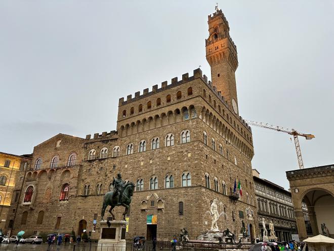 The large building with the square tower is Palazzo Vecchio, the old city hall.