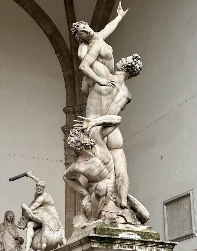 The Palazzo features a large outdoor sculpture gallery, including the original Abduction of a Sabine Woman. The plaster model is on dislay in the Galleria dell’Accademia.