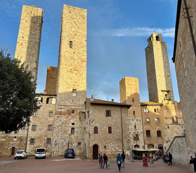 San Gimignano is known as “the town of fine towers” because almost all of its medieval tower homes have been preserved. Here you can see five of the remaining dozen or so towers.