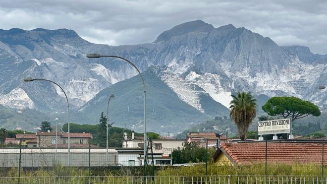 The white patches on the mountains are the famed Carrara marble quarries, visible from the train tracks north of Pisa. We had investigated doing a quarry tour, which looked very cool and had been suggested by Karen’s sister Paula, but we couldn’t make the logistics work. Maybe next time.