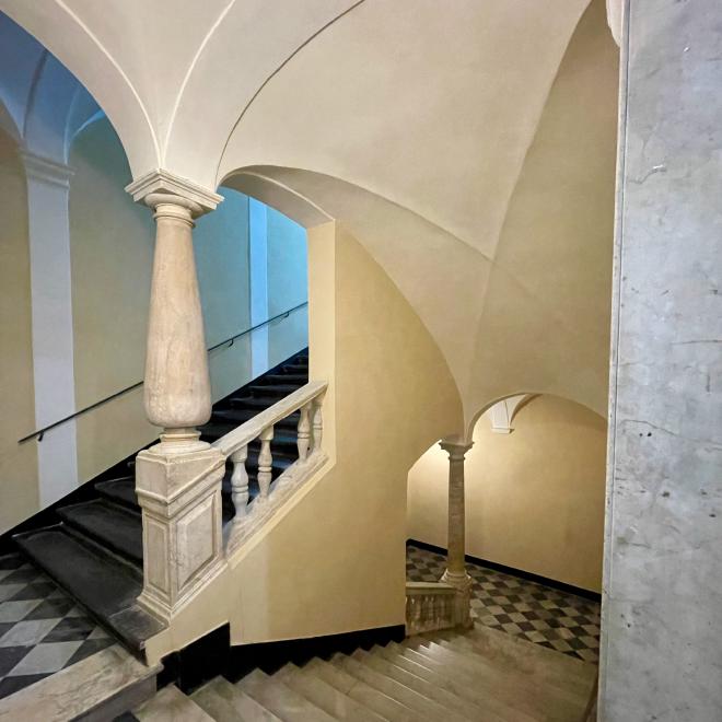 The apartment was in an elegant old building that was once on the official list of buildings that minor nobility were permitted to stay in when visiting Genoa. In the post-war years the building was allowed to run down, like many buildings in Genoa, and it has only recently been partly rehabilitated. This is the main staircase.