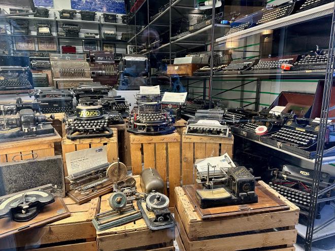 This lovely display of old typewriters is in the window of De Vita Office & Communication just around the corner from our apartment. Greg took it specifically to send to his sister-in-law Elizabeth, creator of Demand Poetry which she types on a manual typewriter.