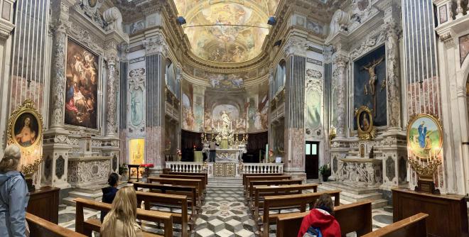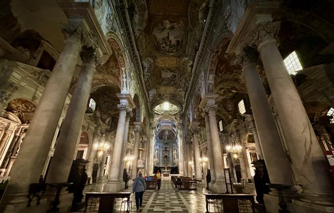 Also near our apartment is Chiesa San Luca, originally constructed in 1188. We weren’t able to get a good exterior shot because of the narrow streets mentioned above. The interior is covered with beautiful frescoes and trompe l’oeil painting.
