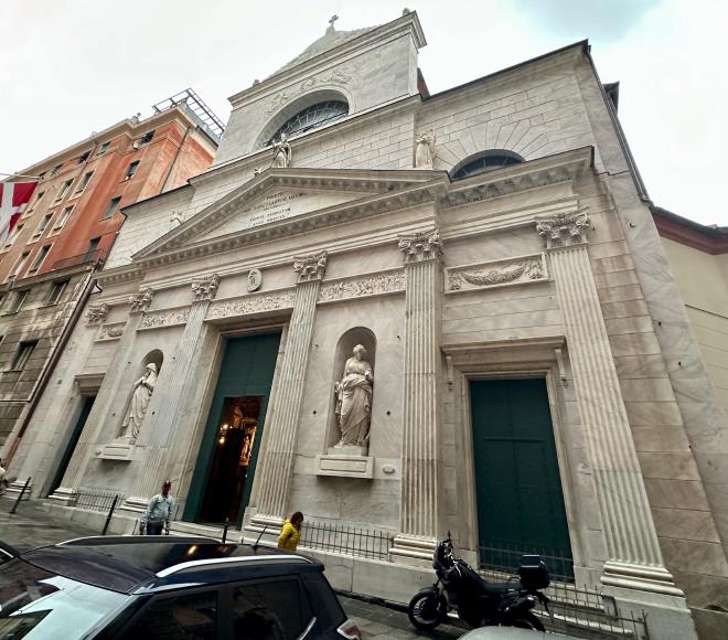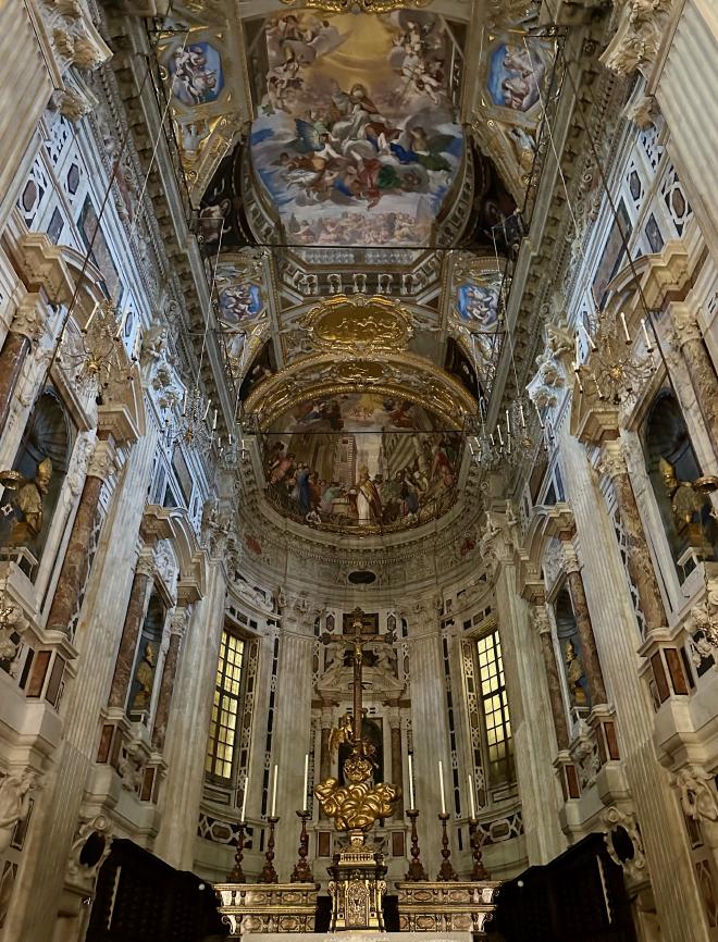 Just around the corner from the Chiesa San Luca is the Basilica San Siro. The Basilica was originally built between the tenth and twelfth centuries, but it was destroyed by fire in 1478 and substantially reconstructed one hundred years later. As with Chiesa San Luca, no good picture of the exterior, but here’s a bad one.