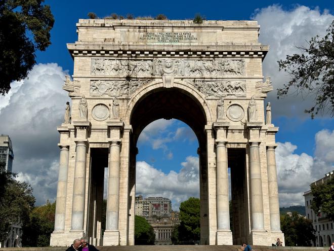 Arco della Vittoria is dedicated to the Genoese who died in World War I. No victory arch for World War II, for some reason.
