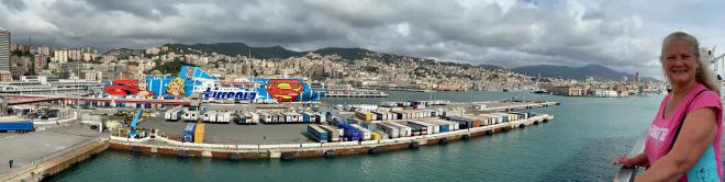 The Port of Genoa is a masterpiece of contempt for ferry foot passengers. However, after some incorrect directions, bad signage, way too long a walk, and some unnecessary stair climbing, we managed to make our way onto the ferry.