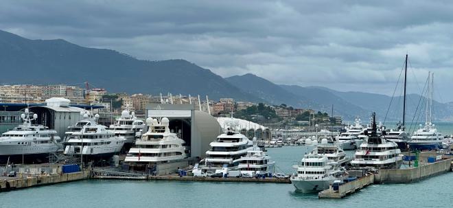 Remember those large yachts from a few pictures ago? Here they are up close, as the ferry was pulling out. Apparently there are a few people with money around Genoa.