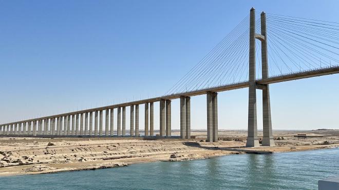 This is the Suez Canal Bridge, also known as the Egyptian–Japanese Friendship Bridge, among other names. It was built with assistance of the Japanese government between 1995 and 2001.
