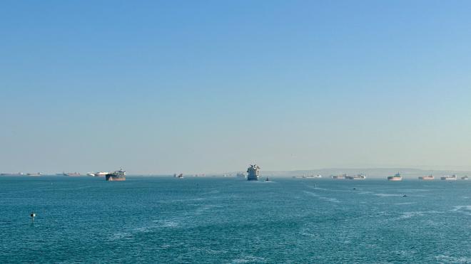 We were able to count at least eight vessels behind us, all container ships. Vessels are spaced according to a ten-minute stopping distance.