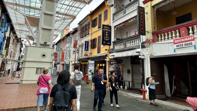 As we were leaving Sri Mariamman, Di Hong joined us. He’d had a family obligation in the morning, and another later in the afternoon, but managed to carve out some time in the middle to spend with us. We all went for a walk together through Little India, which is a noisy commercial sector with many small shops at which you can buy almost anything.