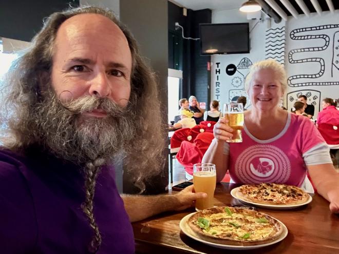 After settling into our apartment, we headed to the Thirsty Crow brewery for dinner. The crow theme comes from one interpretation of the name Wagga Wagga, which can be taken to mean “the place of many crows”. Note the Christmas decorations on the chairs! Both the beer and the pizza were excellent.