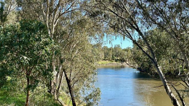 The next morning Greg headed out for a run along the Murrumbidgee River, which flows across the north of the city. The Murrumbidgee is prone to flooding in the wet season, so there’s a massive dike on its south bank to protect the town. Along the top of the dike is a recently-opened cycling and running path, which made for a very pleasant route.