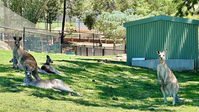 Speaking of kangaroos, these are Eastern Greys, the most common kangaroo in this part of the country. They’ve been clocked moving as fast as 64 kilometres per hour. These ones were averaging about zero. Kangaroos are mostly nocturnal, and tend to doze in the shade during the day.