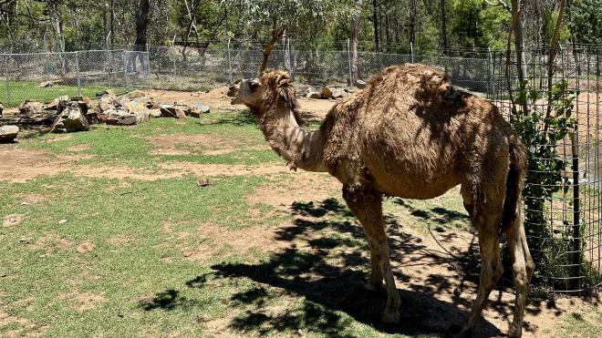 Dromedary camels aren’t native to Australia, but were introduced in the late 19th century for expeditions into the Australian interior and subsequently saw widespread use transporting goods. When motorized transport became more common in the early 20th century, many of the camels were simply released into the wild. Australia now has the world’s largest population of feral camels, mainly in the western interior. In 2013 the population was estimated at 600,000. Since camels eat almost anything and are quite destructive to their habitats, the population has been culled to below 300,000 and is actively managed.