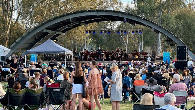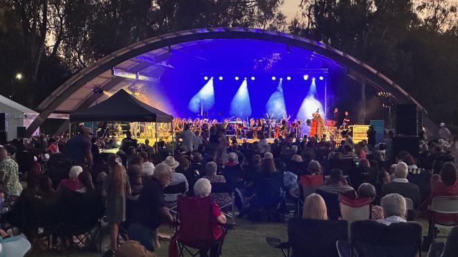 The next two days were mostly down time, but on the evening of the 16th we headed to the Riverside Precinct for “Christmas with the Con”. The Con, as it’s known, is more properly the Riverina Conservatorium, a music school headquartered in Wagga Wagga but with branches in several of the surrounding towns. The idea of an outdoor Christmas concert in a park is a little alien to us cold-December Canadians, but it definitely works in Australia.