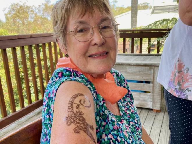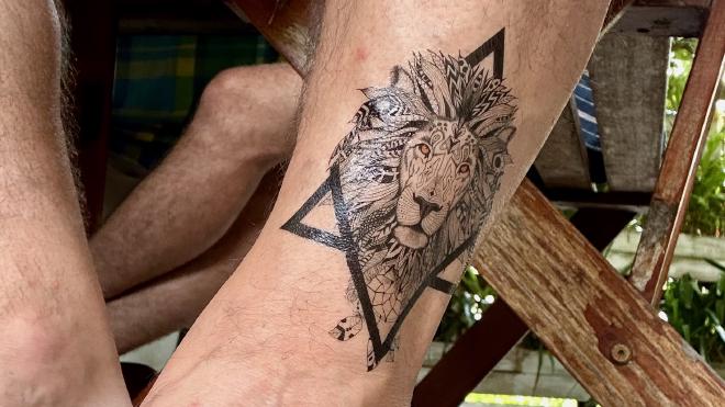 Greg also got a temporary tattoo, which he put on above his ankle (one of the few mostly-hairless parts of his body!)