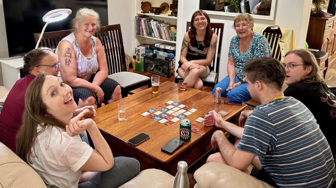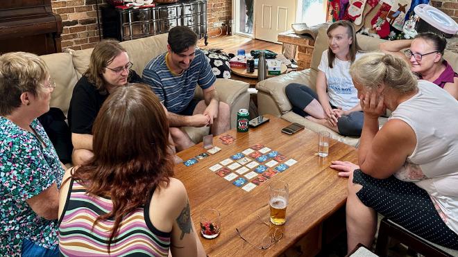 In the afternoon we had a fun game of Codenames. Going widdershins from Karen: Liz, Bec, Tyler, Kyle, Margaret, Sophie.