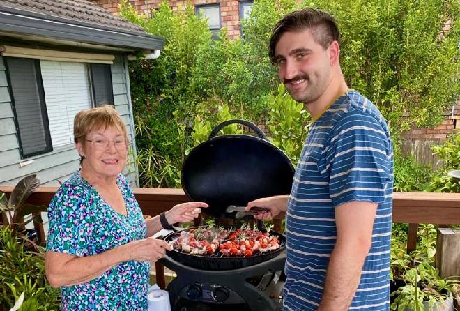 It was a great day of cooking, drinking (in moderation), eating (definitely not) and hanging out. Here are Margaret and Liz’s youngest, Tyler, cooking lunch and demonstrating that “throw another prawn on the barbie” is absolutely a thing. The skewers are rosemary, cut from the six metre long rosemary hedge in Liz’s back yard, and added a nice flavour to the food. (Photo: Bec.)