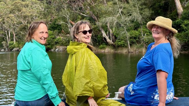 From the launch we went east down the Hacking River, then south, and then west up South West Arm Creek. Along the way the boat seems to have acquired three figureheads, each with a very different reaction to the wind.