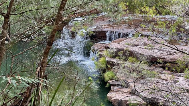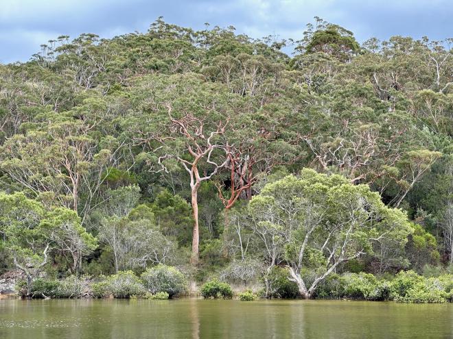The landscape and vegetation along the Arm is spectacular. The twisty red trees are Angophora, also known as Sydney Red Gum.