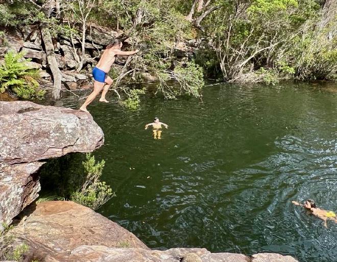 We all went for a swim, although Louise’s time in the water was brief and full of shrieks about the cold. Fortunately, that meant she was available to take pictures of the rest of us. Here’s Liz jumping in. (Photo: Louise)