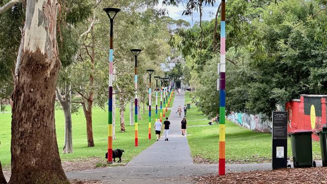 Newtown is an eclectic, artsy, self-consciously hip neighbourhood. The people-watching on the streets and in the park was a lot of fun. We didn’t get any photos of the juggling itself, but Karen got to teach someone a bit of poi and Greg did some fun passing with Kenny Cheung, who is a delightful guy and a super juggler that we know from the 2016 and 2017 European Juggling Conventions.