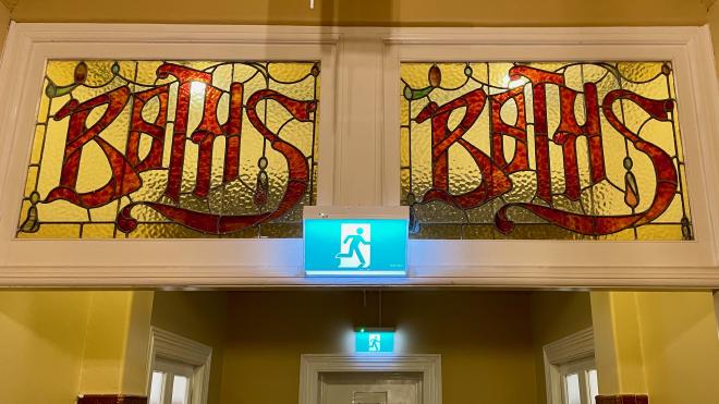 We booked a “traditional” room, which meant that our bathroom wasn’t an ensuite, but rather a separate room at the end of the hall. It was still a private room, that opened only to our key, but we had to go down the hall to get there. We suspect that the baths were originally not private, with men’s on one side of the hall and women’s on the other.