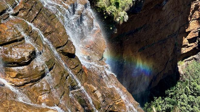 A view from slightly closer to the falls. See the rainbow at the bottom right?