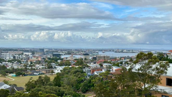 And this is the view from the same spot, looking over the Newcastle harbour and the downtown core (or CBD, Central Business District, as they say in Australia).