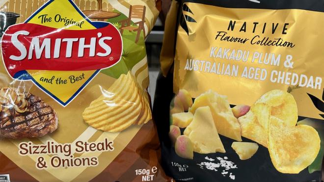Some more new-to-us chip flavours. We weren’t impressed; the steak and onion was just weird, and the Kakadu plum and cheddar was bland.