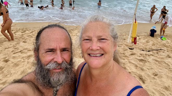 Behind us is Nobby’s Beach, our last destination for the day, where we had another short swim. Then it was back to the apartment for a dinner of leftovers and packing up for the next leg of our journey.