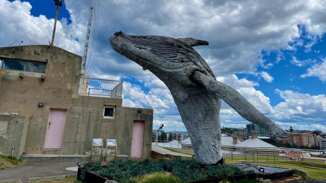 This sculpture is currently at Fort Scratchley, where it was installed last year as part of a temporary art exhibition. During the exhibition it was bought by the former Lord Mayor of Newcastle and is due to be moved to a housing estate in Tuross Head sometime soon. So we suppose we were lucky to see it.