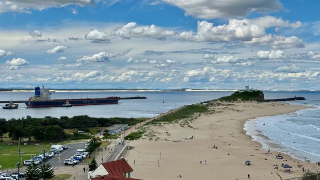 The views from Fort Scratchley are wonderful, as one would expect from a nineteenth-century defensive work. While we were up top this tanker was exiting the harbour, accompanied by three tugs.
