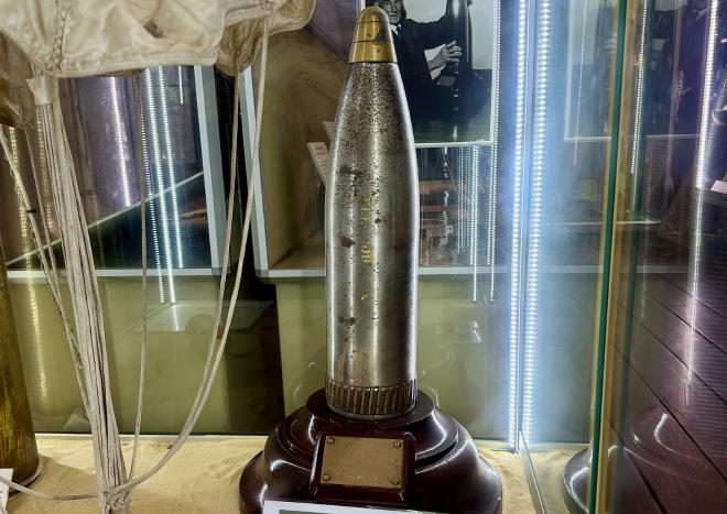 According to the displays at the Fort – which disagree slightly with the Wikipedia article linked above – of the twenty-six conventional shells fired at Newcastle, only three exploded and there were no casualties. There is speculation that the shells were 1914-era British stock that had long since expired. This is one of the unexploded shells.