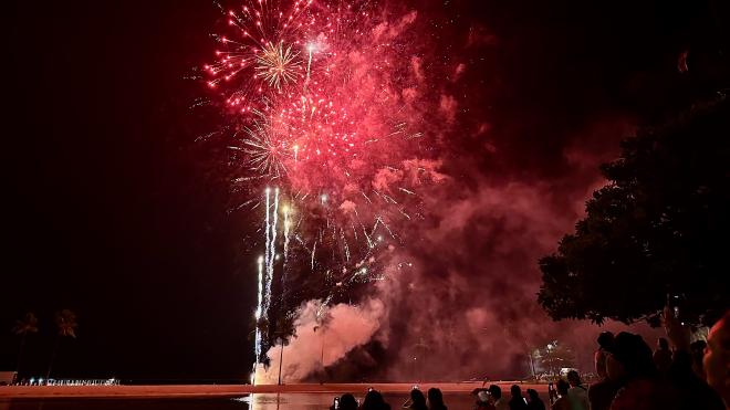 On Friday evenings there’s a short fireworks show over the Hilton Lagoon, right beside Kahanamoku Beach. We got back from dinner at the Waikiki Brewing Company (good beer, OK food) just in time to catch it.