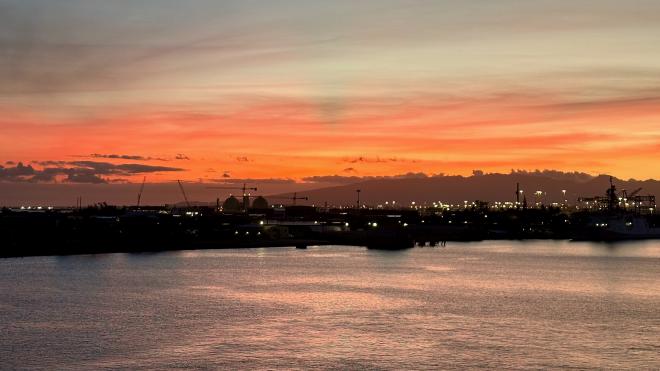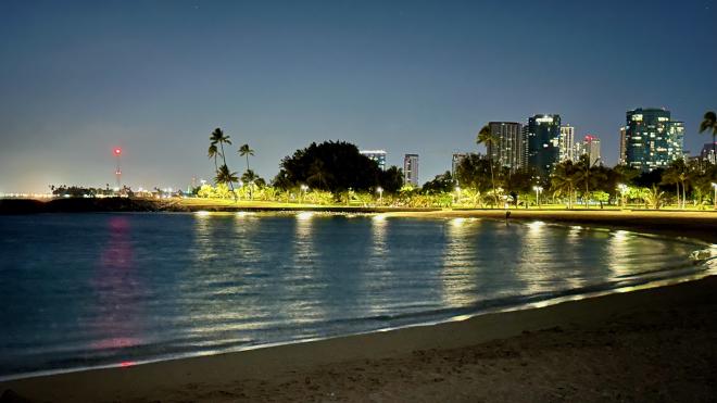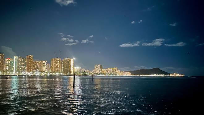 Leaving O‘ahu we headed along the coast of Waikiki, giving us one last chance to enjoy the city lights.