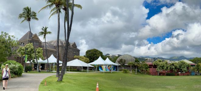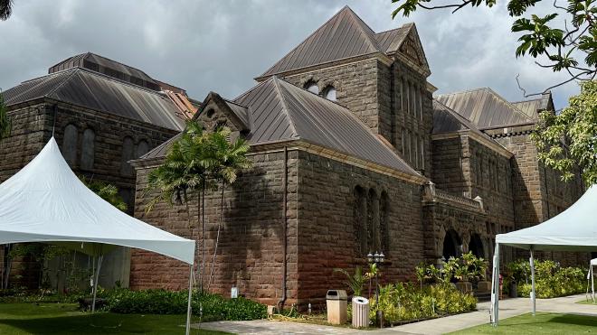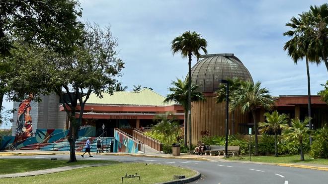 The Museum is in several buildings on a large property. It was founded in 1889 by Charles Bishop in honour of his late wife, Princess Bernice Pauahi Bishop. This is the entrance building with a small planetarium beside it.