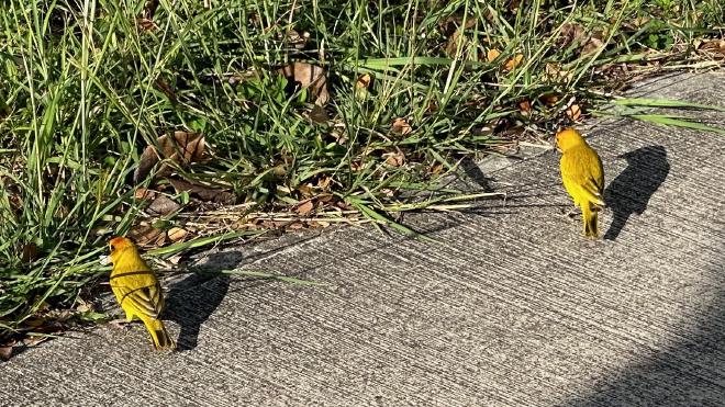 Taking the bus back we thought we’d missed a change in the downtown core, and decided to walk the few kilometres back to the apartment. (It turned out we were wrong; the bus we thought we’d missed passed us a few minutes later.) Along the way we spotted these pretty birds on the sidewalk.