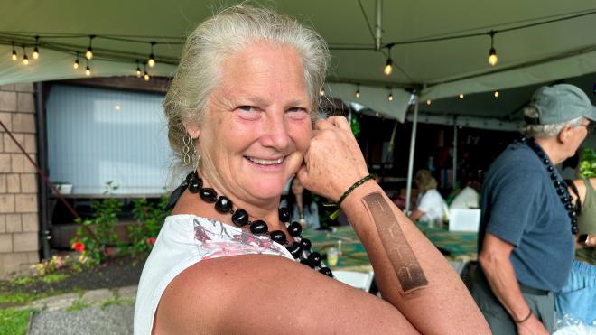 Karen also got her first tattoo. Or maybe it was a water-soluble stamp. Whatever. The birds represent safe travels.