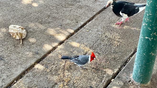 We stopped near the Honolulu Aquarium for a snack, where we were joined by some friendly (hungry?) birds.