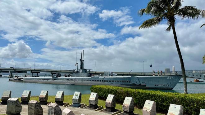 The Pacific Fleet Submarine Museum is immediately adjacent the Pearl Harbour National Memorial. This is a the USS Bowfin, which forms part of the Museum. We had intended to visit it, and also possibly the Battleship Missouri Memorial, but were exhausted after three hours at the main Pearl Harbour site.